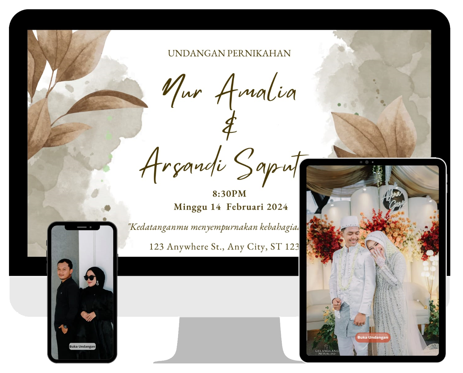 Bagikan undangan pernikahanmu secara elegan dan memukau. Tampilkan kesan undangan modern kepada mereka yang kamu undang.